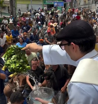 Após a procissão, os cavaleiros e as amazonas puderam receber a benção sacerdotal do pároco da Matriz de Santo Antônio, Pe. Helder.