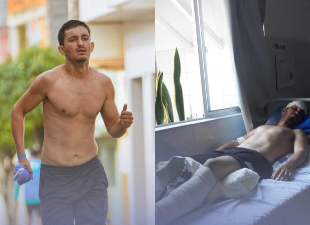 De acordo com informações atualizadas, o estado de saúde é considerado instável. O jovem sofreu ferimentos graves na cabeça e teve fratura no pé, além de outras lesões decorrentes do impacto.